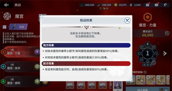 攻略「魔宫」副本的关键在于三者间的相互克制关系——力量克制感知,感知克制技术,技术则克制力量。