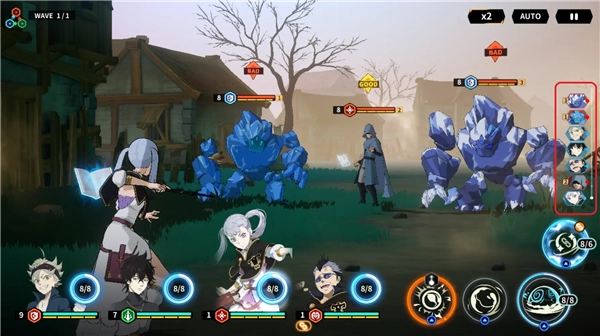 战斗将按照「行动顺序」展开,右侧的「行动条」可用于查看回合顺序。