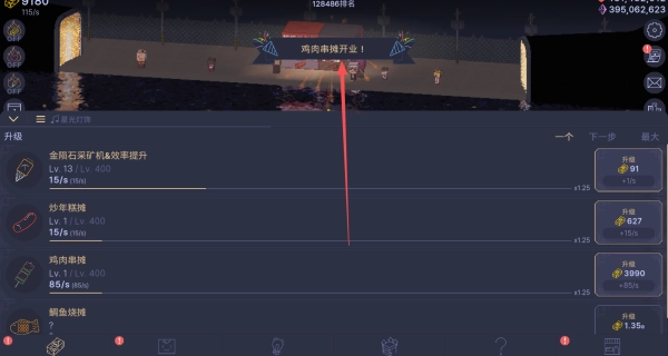 升级之后,我们后续可以解锁更多摊位,像炒年糕、鸡肉串之类的都能解锁。