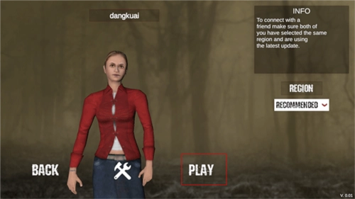 需要先在人物上方设置好昵称,才会显示PLAY按钮;右侧设有地区选择功能,联机时需要确保双方处于同一区域。
