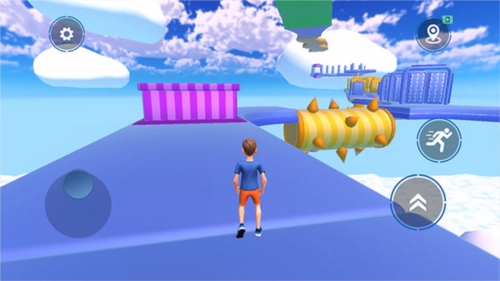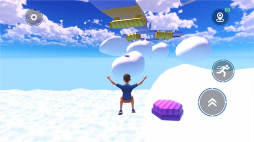 然后熟悉一下操作:右侧设有“奔跑”“跳跃”按钮,左下角通过滑动隐形轮盘,可控制角色移动。