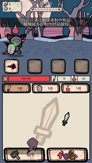 在熟悉了游戏的世界观设定后,你就可以正式踏上挑战魔王的冒险之旅了。在这段旅程中,你能够通过点击屏幕的方式来快速制作各种道具,而且点击的次数越多,道具的制作速度也会相应地加快。
