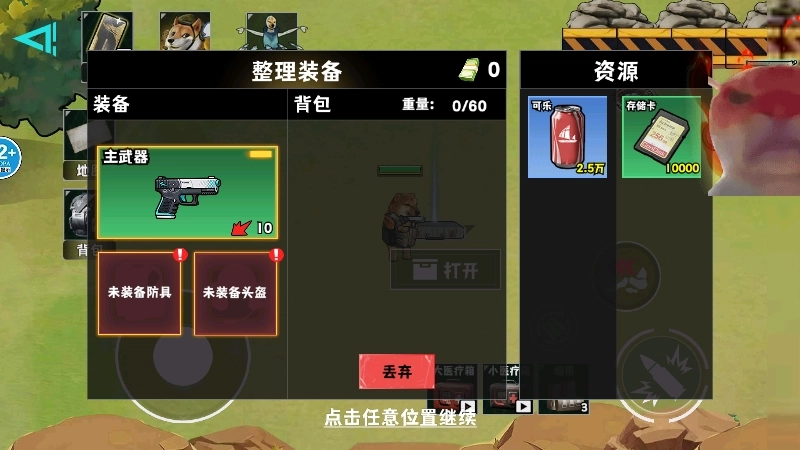 2、地图里会出现不少资源,我们点击【打开】,就能把它们收集到背包里了。