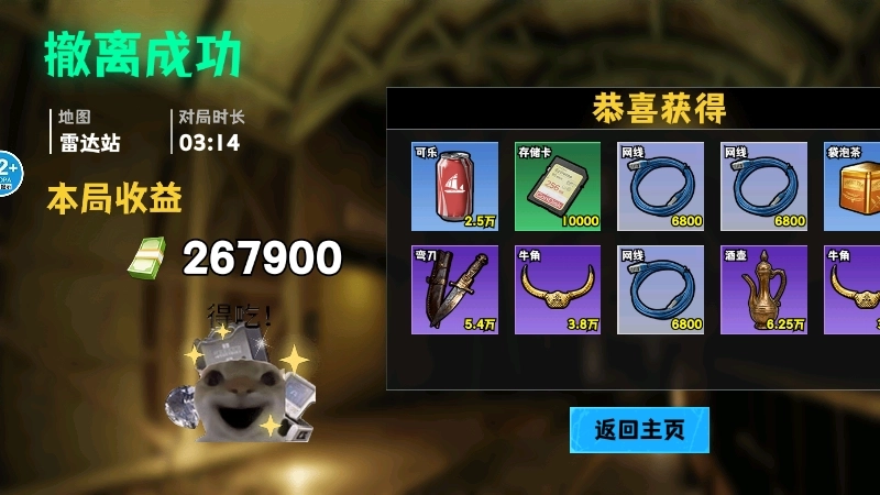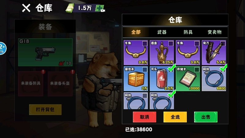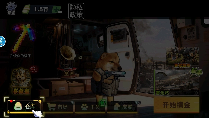 7、回到游戏主界面,点击左下角的【仓库】按钮,就能进入背包把我们获得的战利品兑换成游戏内货币(或道具)。