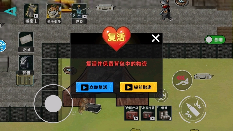 4、即便因受到伤害而死亡,我们只需点击【立即复活】,不用观看广告就能继续游戏。