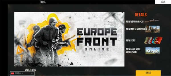 《欧洲阵线》中文版是一款采用3D风格打造的动作射击游戏。游戏以二战历史为背景,玩家将化身为一名二战士兵,亲身参与到激烈的二战战场之中,怀着对祖国的忠诚奋勇作战,力求歼灭更多敌人。你可以运用手中的各类武器以及投掷道具,消灭沿途遭遇的敌人。游戏内还包含了丰富多样的地图场景与玩法模式,快来体验一番吧!