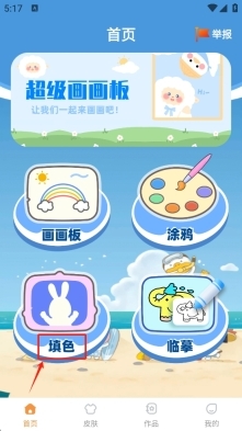1、启动超级画画板应用,在首页找到“填色”选项并点击,进入填色页面。