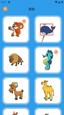 2、在填色页面里,挑选你想进行填色的图案,像图中的鲸鱼图案就可以。