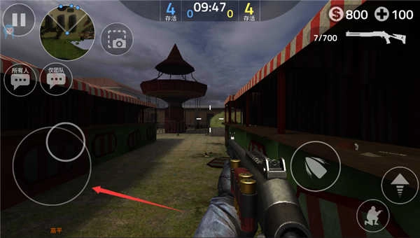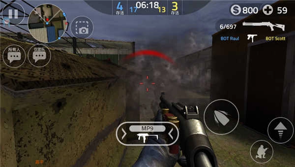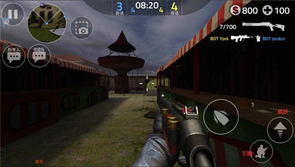 右下角集成基础动作键,包括射击、跳跃、蹲伏,适配不同地形下的战术需求;