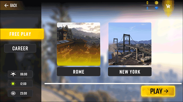 2、在游戏模式里选择并点击“free play”选项,进入免费模式后,可在右侧选择地图,选好地图后点击“play”选项,就能开启卡车生涯了。