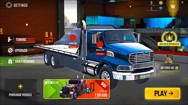 1、随时开启竞速冒险之旅,多样关卡挑战待你参与,操控大货车一路驰骋向前;