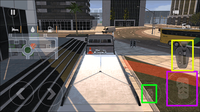 3、此处为教学环节,玩家需在此学习驾驶操作:紫色方框对应的是油门选项,绿色方框对应的是刹车选项,黄色方框对应的是换挡选项。