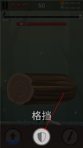 5、点击盾牌按钮可以控制火柴人抵挡伤害。