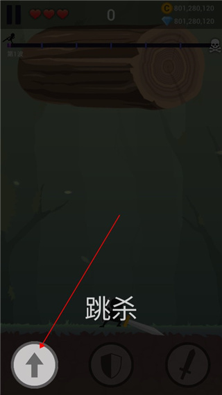 进入游戏后,点击向上的按钮就能操控火柴人向上跳跃。