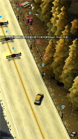 4、撞击蓝色指标物能够获得加分,当警车处于附近时停下并点击警车,即可将其撞毁。