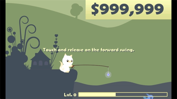 2、长按屏幕,控制小猫的鱼竿,选择合适的力度进行抛出。