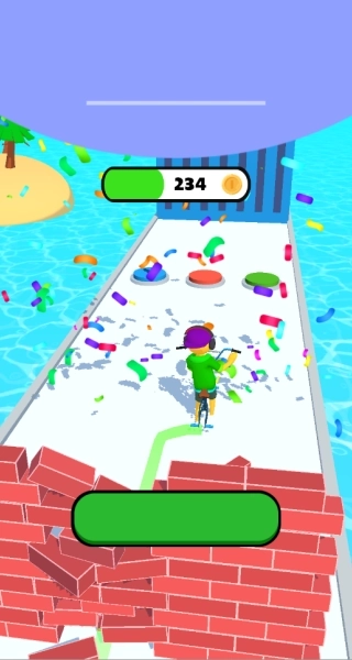 3、借助车轮数量越多速度越快的机制,前期多收集车轮来提升速度,后期依靠高速度快速通过障碍物密集的路段,从而减少消耗。