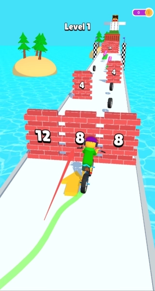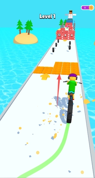 3、临近终点时,要是车轮数量还比较充裕,就能凭借高速度直接向前冲刺;要是数量不够用,那就放慢速度,把剩下的车轮逐个收集起来,这样才能保证顺利通过关卡。