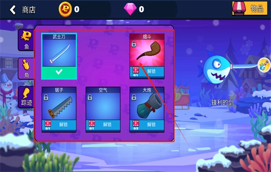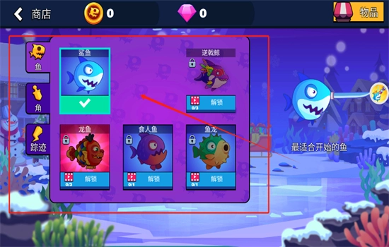 2、打开游戏进入,在商店可以解锁不同的鱼