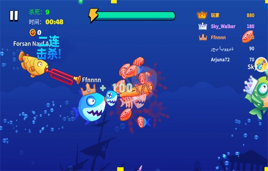 游戏的核心玩法在于持续击败其他鱼群,同时要留意保护自身不被其他鱼类捕食。