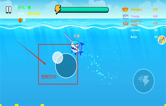 6、操控鱼与其他鱼战斗,不断增强实力,成为冠军!