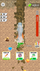 1、在游戏里,只需点击屏幕就能操控铅笔向下挖掘,以此收集矿石。