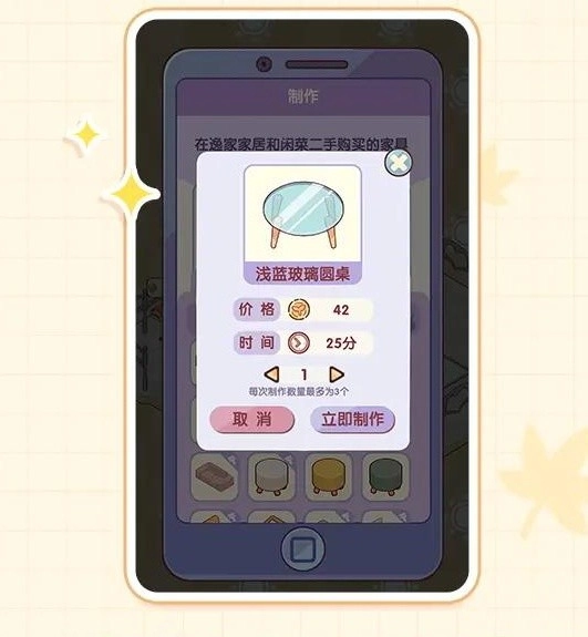 制作家具需要花费一定时间,要是想更快拿到家具,还能使用加速券或者去蜗壳市来缩短制作时间哦!