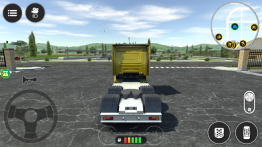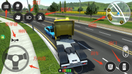 3、随着燃油机的轰鸣声响起,玩家将正式进入游戏,左侧设有方向盘、喇叭等操控部件,右侧则配备了刹车、油门、倒档等操作装置;