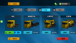车库:每个关卡都有对应的专属车辆可选,像拖车、起重卡车、大型吊车、水泥车等,都是为不同关卡量身打造的。不过要解锁这些车辆,得用你完成运输任务赚取的奖励去购买才行!