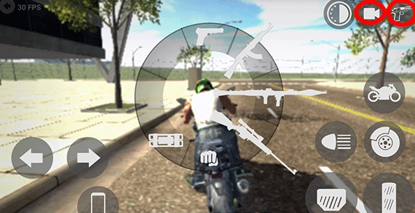 3、点击枪的图标,可任意选择枪支,点击摄像图标可以切换到开车第一视角,更加身临其境。