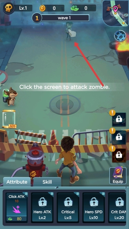 进入游戏战斗界面后,依据提示点击屏幕,即可对出现的僵尸发动攻击,从而开启战斗进程。