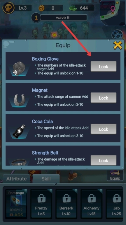2、点击“装备”选项进入装备界面后,能查看拳击手套、磁铁等装备的解锁条件与效果,了解后续可获取的装备所带来的助力。
