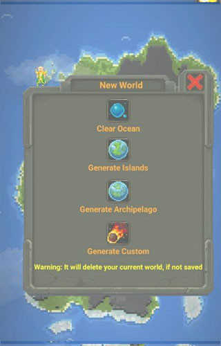 4、当出现“new world”字样时,这就代表进入了新世界,接下来需要找到现代模式下的“Generate islands”选项。
