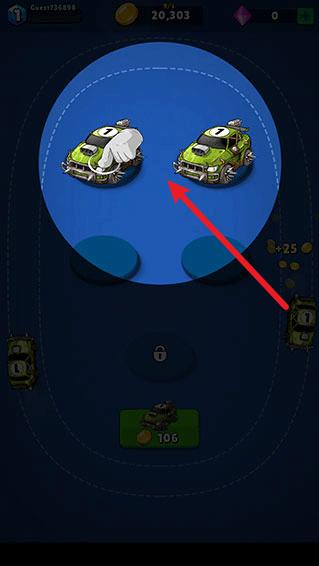 2、把相同等级的战车拖动到一起就能完成合并升级,从而获得更高级别的战车。