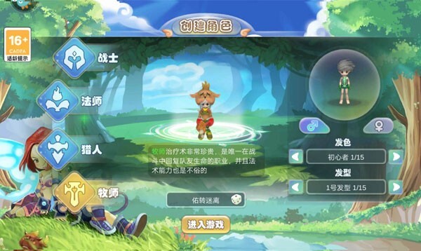 1、采用可爱风格设计,开局有四大职业可供挑选,每个职业都萌趣十足。