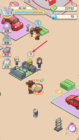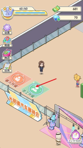 3、别忘了可以通过左上角区域为员工升级,或是提升顾客的体验。