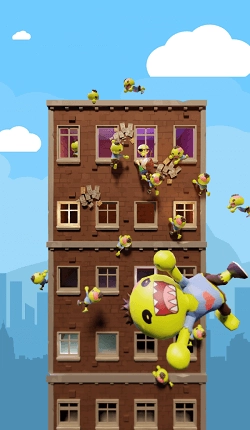 2.许多僵尸正往建筑顶端攀爬,玩家需借助武器将所有僵尸全部消灭。