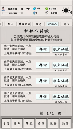 在寻仙台招募弟子,或是借助魂魄召唤弟子都可以。同一个弟子只能拥有一位。弟子的等级越高,其战斗力也就越强。经验值能够提升弟子的等级,通过云境、奇遇、论道、指点等途径可以获取经验。弟子的品质划分为神(紫色)、仙(蓝色)、凡(绿色)这四个等级,神级弟子最为厉害,品质越高的弟子在升级后,基础属性所获得的加成也会越高。