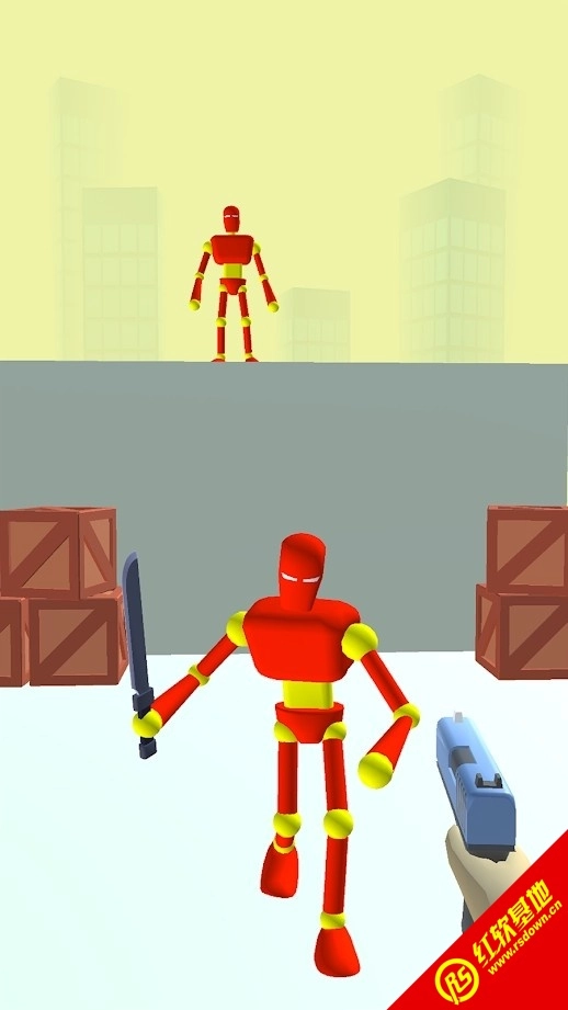 游戏中有许多物品可以用来攻击机器人。选择最方便的武器,一击即可消灭敌人。