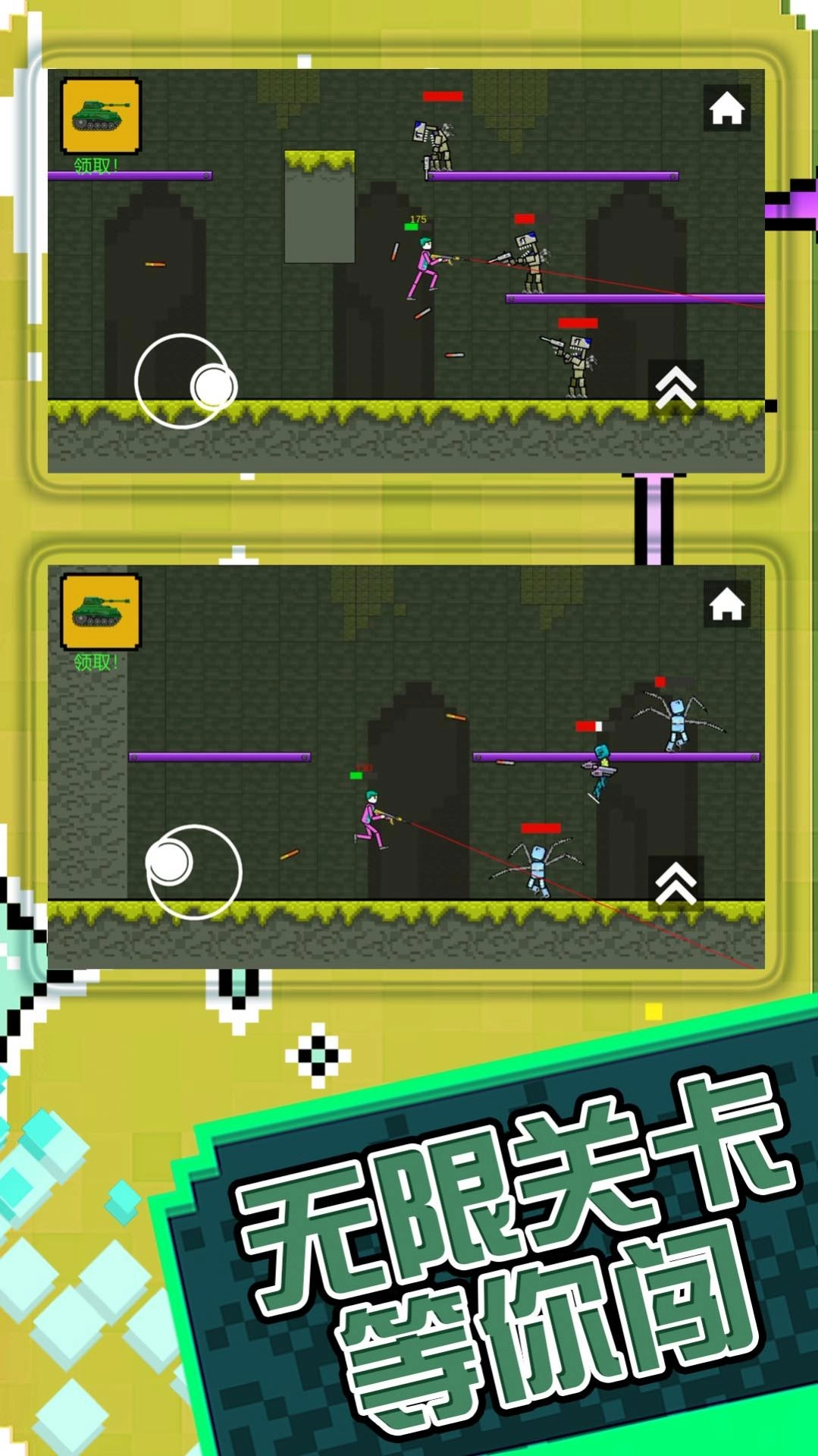 【火柴人子弹风暴】是一款以火柴人为核心主题的横版休闲射击游戏,经典的像素画风唤起玩家满满的怀旧情愫。游戏提供多个可选用的角色,每个角色都具备独特的属性与动作,玩家能依据个人偏好自由挑选。此外,游戏还打造了丰富多样的关卡,每个关卡都配有别具一格的敌人、陷阱与地形设计,让游戏体验更添趣味。