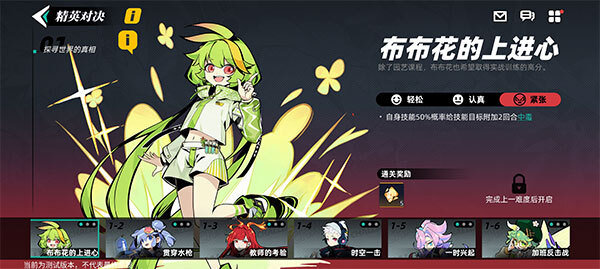 精英对决玩法将依据主线章节的推进情况逐步开放,每个精英对决挑战设有轻松、认真、紧张三个难度等级,且难度遵循线性解锁规则——顾问们需先完成低难度挑战,方可解锁更高难度;而完成高难度挑战,也能获得更为丰厚的通关奖励。