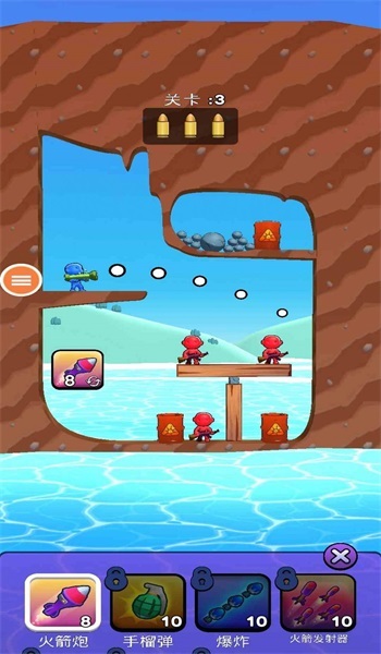 1. 在每一个关卡里,先观察敌人所在的位置,再挑选恰当的角度来实施精准的射击。