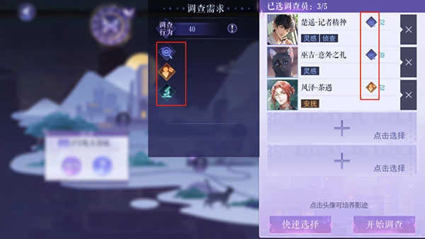 2、优先选择具备对应能力标签的影迹,如某任务要求“灵感”属性,则应选择具备此标签的角色。若当前无符合条件卡片,也可选用同类型下总效果更高的影迹替代。此外,界面右上方的提示气泡能直观反映当前阵容是否满足通关条件。