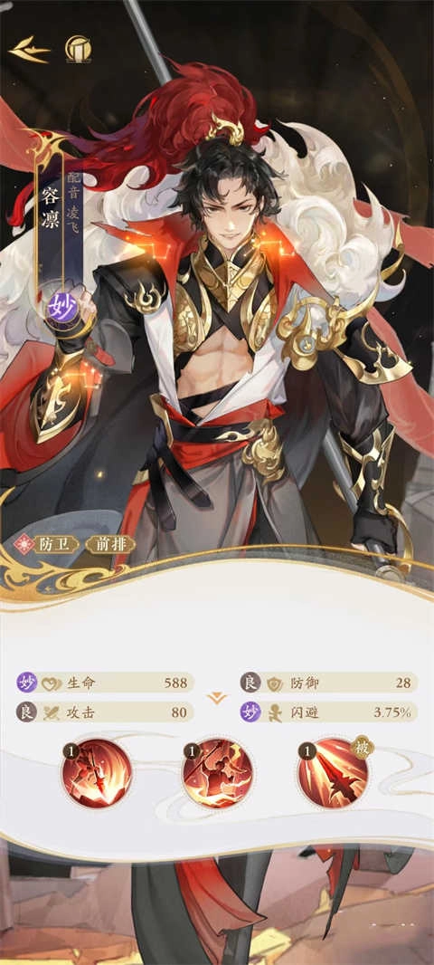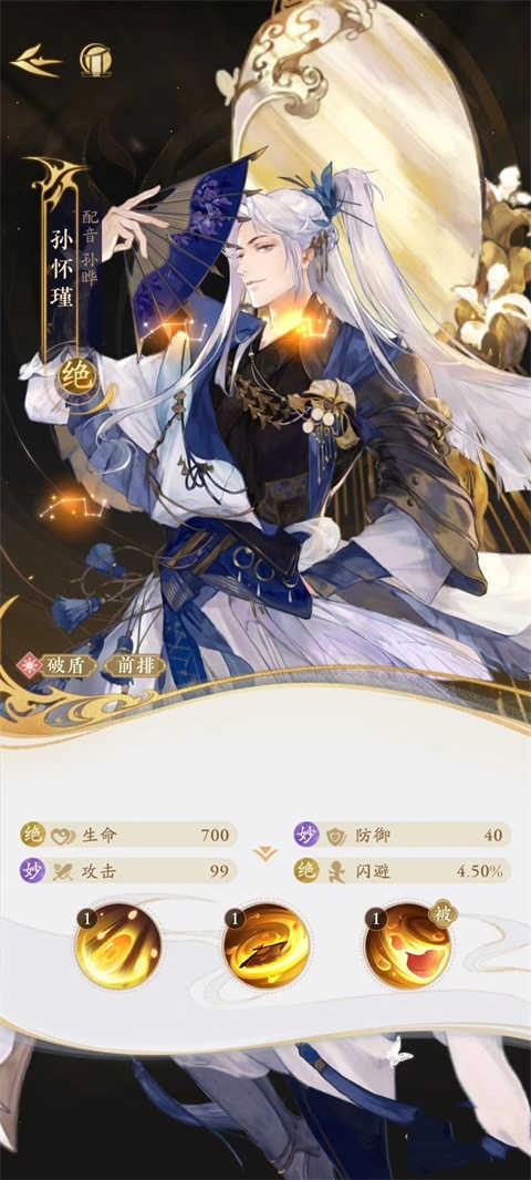 它具备驱散敌方正面状态与削弱其防御的能力。普通攻击“乾坤明”能凝聚光线对单个目标造成伤害,而必杀技“洞隐烛微”不仅会进一步增强伤害效果,还可驱散目标身上的一个正面状态。被动技能“锁朱目”则能在发起攻击时降低目标的防御力。