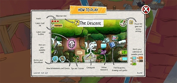 安装完成后启动游戏,首页悬浮着半透明的墨迹公告,轻轻点击Accept,它便像揭开封印般悄然消散。选择Start Game,画面瞬间化作一张摊开的素描纸,纸角微微卷起,仿佛正等待着第一笔的描摹。