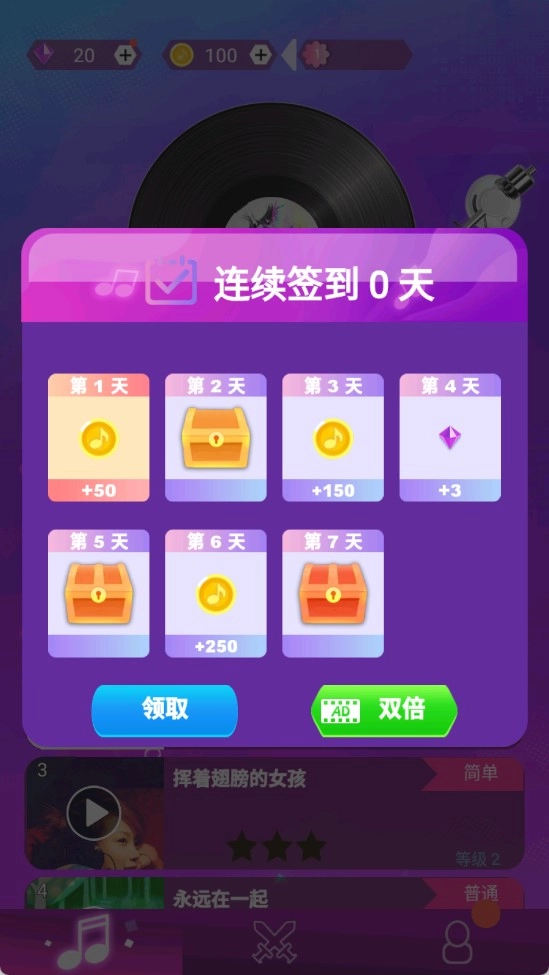 1、挑选想要挑战的歌曲,可先试听。推荐佩戴耳机体验游戏。