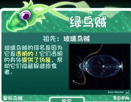 绿乌贼的腕足末端分布着吸盘状的微光点,静止时它就像苔藓一样附着在陨石背面,而当它移动时,腕足便会舒展成发光的藤蔓。