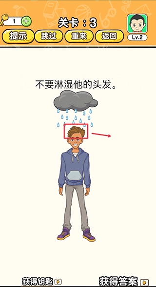 第三关:把男生的头发移出乌云外即可通关
