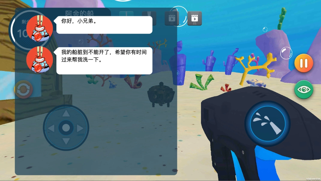 高压水枪清洗比奇堡是一款十分有趣的休闲游戏。在游戏里,玩家将化身手持高压水枪的清洁工,场景设定在大家熟悉的比奇堡。玩家要在这里完成清理任务,用水枪瞄准并冲刷掉居民房屋上的污垢与杂物,让每一栋建筑都焕然一新。感兴趣的朋友快来体验吧。