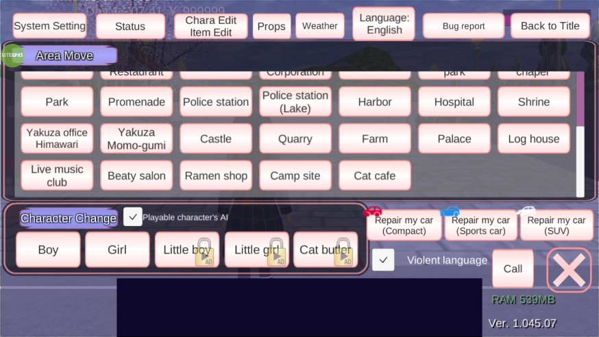 2、校园模拟器的驾车、喷气背包功能